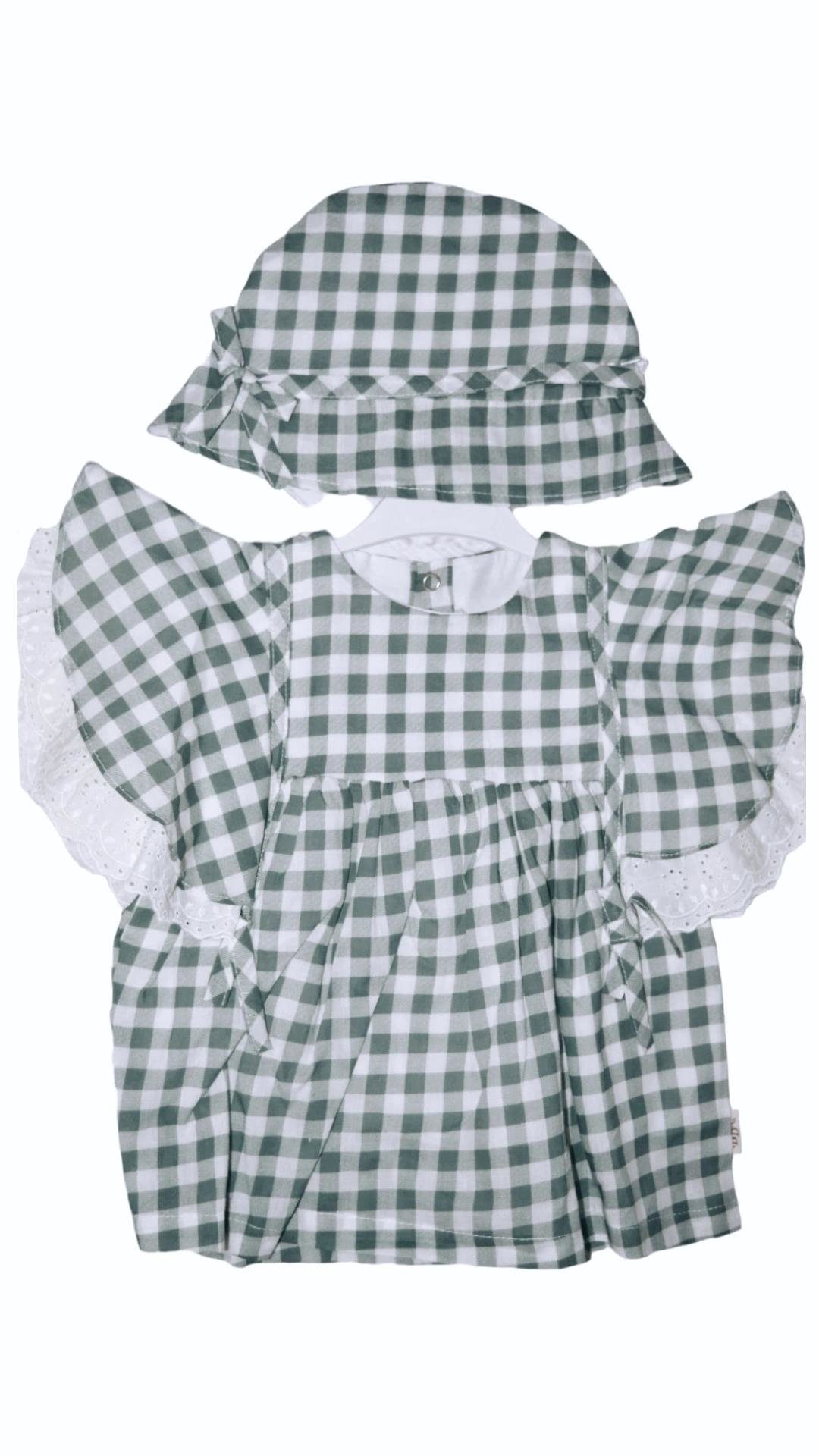 Ruiten jurk met hoed 2-delig groen